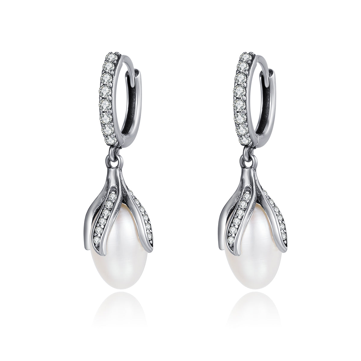 Theses beautiful earrings, featuring a pearl drop design that is almost floral in nature, are the perfect accessory for any fancy outfit.