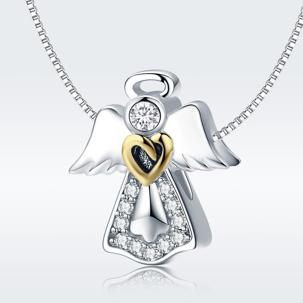 This exquisite angel charm, featuring a gold-plated heart and cubic zirconia stones, will be the perfect addition to any charm bracelet or necklace. Its intricate design will add a touch of elegance to any outfit. Elevate your style with this must-have piece!