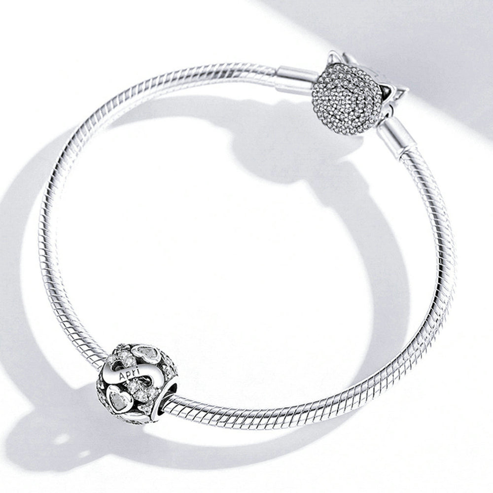 Embrace the everlasting beauty with our April Infinity Birthstone Charm. Adorned with sparkling white cubic zirconias, with an infinity loop and heart design. It's a timeless charm that represents infinite love and endless possibilities. Featuring the birthstone for April, it's the perfect addition to your charm collection. Elevate your style with this luxurious charm.