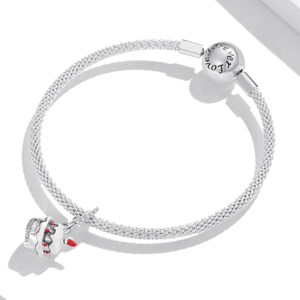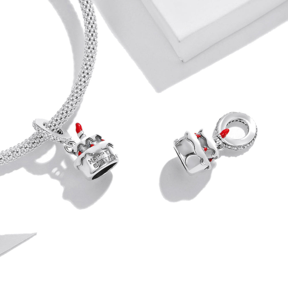Celebrate another year around the sun with our sterling silver Birthday Cake Dangle Charm. This charm features intricate enamel and cubic zirconia details. Treat yourself or a loved one to this beautiful piece, perfect for any birthday celebration.