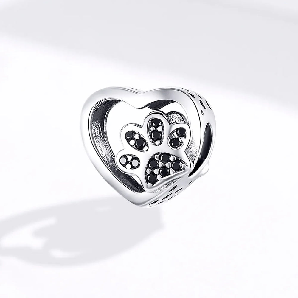 Fall in love with our Black Paw Heart Charm! This beautiful charm features a black paw design in a heart shaped setting. Perfect for animal lovers. Show your passion for your furry friends with this unique and stylish charm. A must-have for any pet owner.