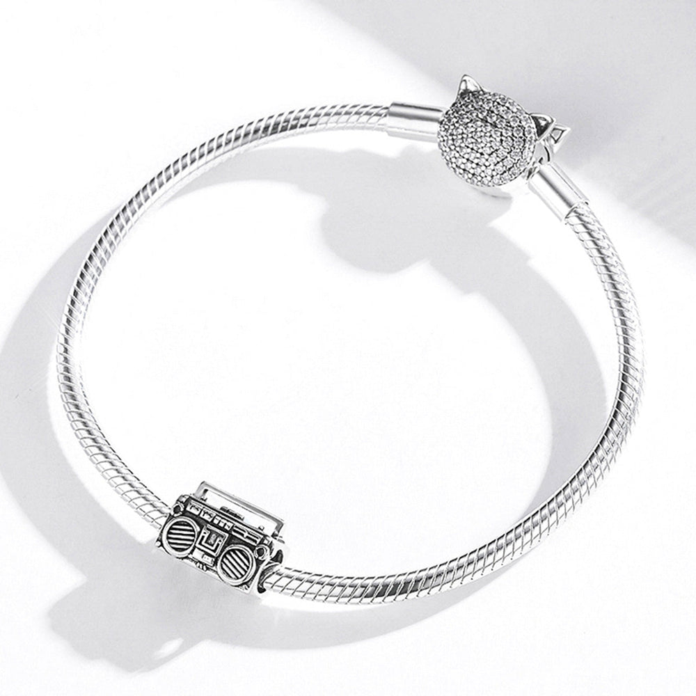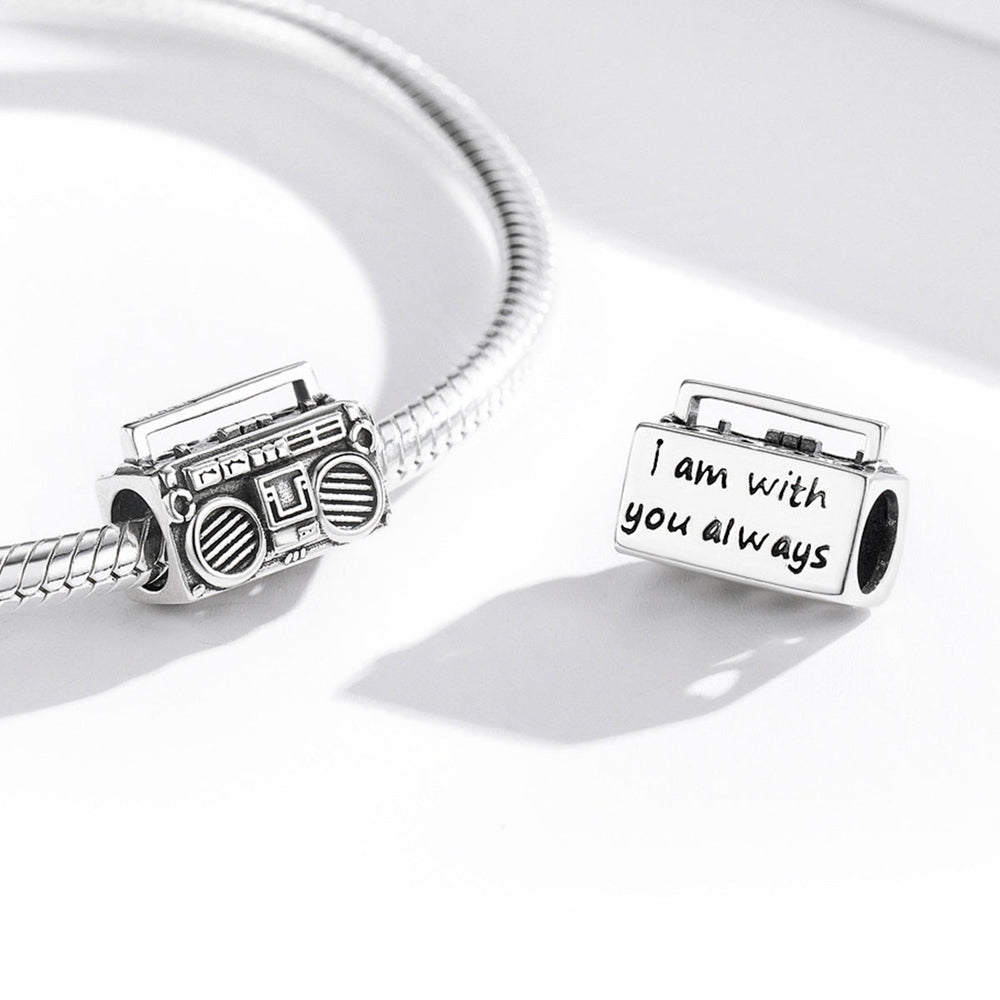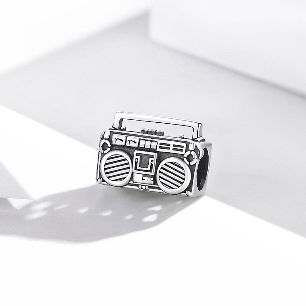 Take a trip down memory lane with our Boombox Charm, crafted from sterling silver. This retro-inspired piece will transport music lovers back in time, reliving the golden era of boomboxes. Wear this charm on a necklace or charm bracelet.