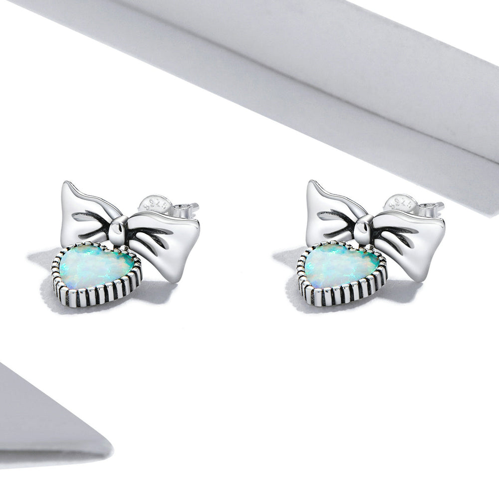 Add a touch of charm to any outfit with our Bow with Opal Heart Earrings. These sweet sterling silver bow studs feature a stunning opal heart drop. The perfect accessory when you're after a cute finishing touch.