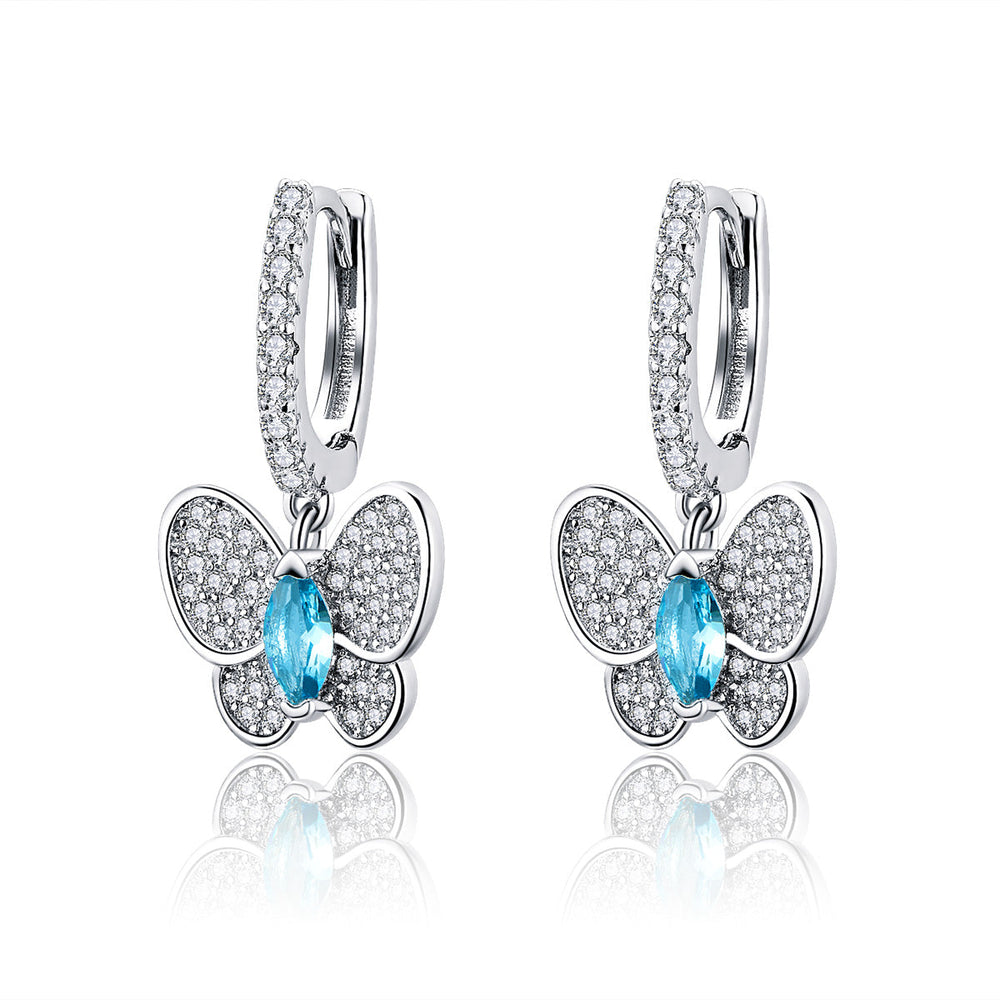 Elevate your style with these Butterfly Drop Earrings, delicately adorned with sparkling cubic zirconia stones. Crafted from sterling silver, these eye-catching earrings are the perfect accessory for any ensemble.