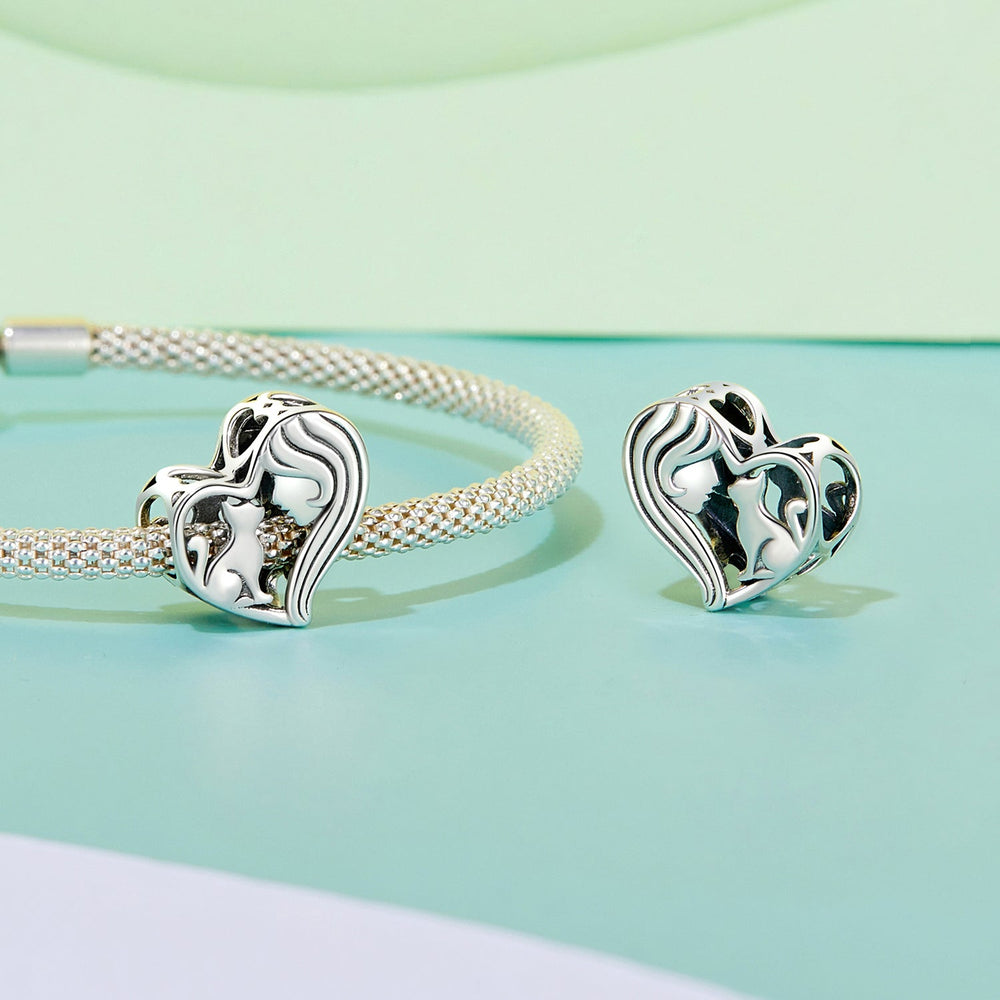 Purrfectly adorable, this sterling silver heart charm captures the special bond between a girl and her feline friend. Delicately crafted in a heart shape, it's the perfect accessory for any cat lover.