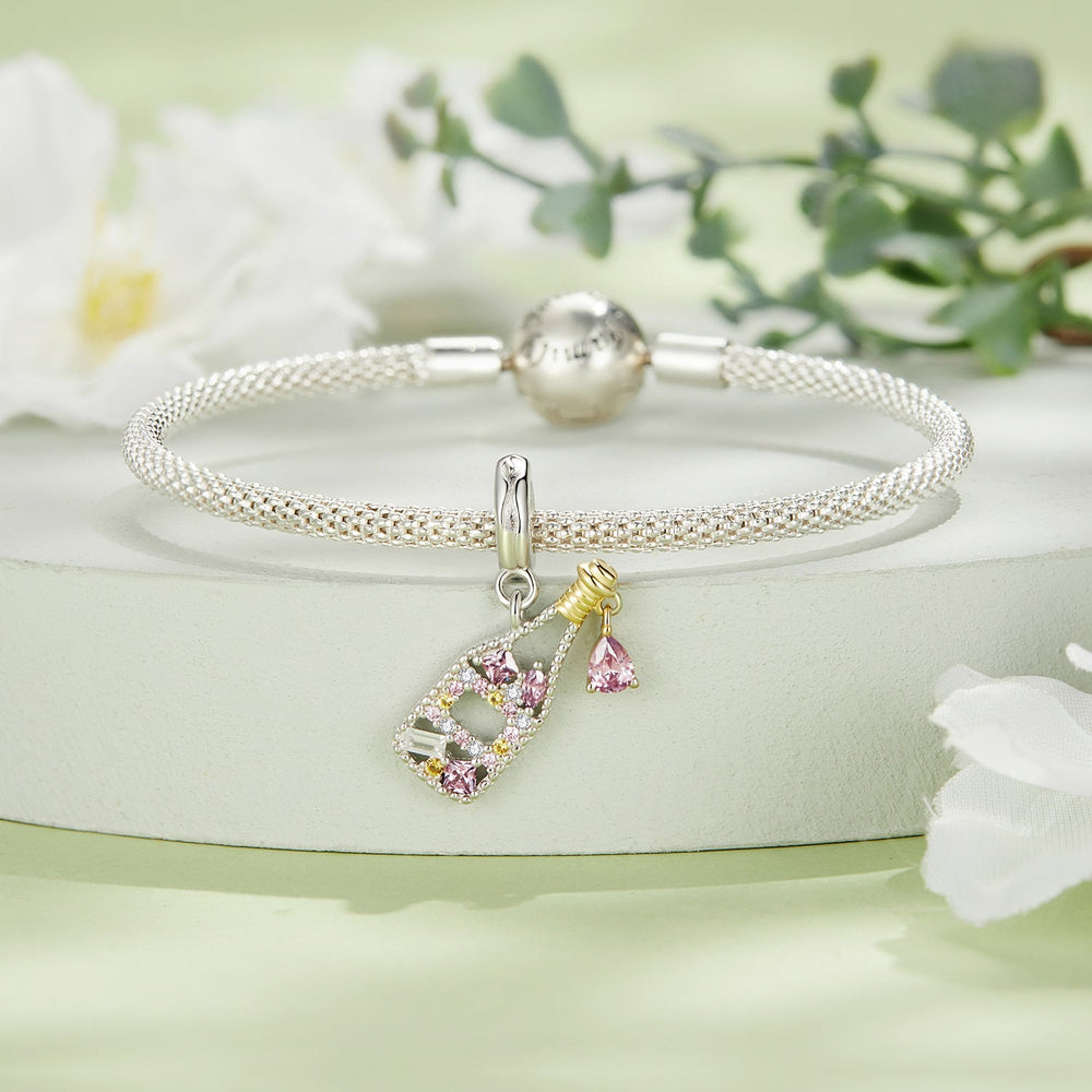 Cheers to style with our Champagne Bottle Dangle Charm. The sparkling cubic zirconia and luxurious gold plating make it perfect for any special occasion - or just any day you want to add a touch of chic glam to your look. Pop the bubbly and celebrate in style.