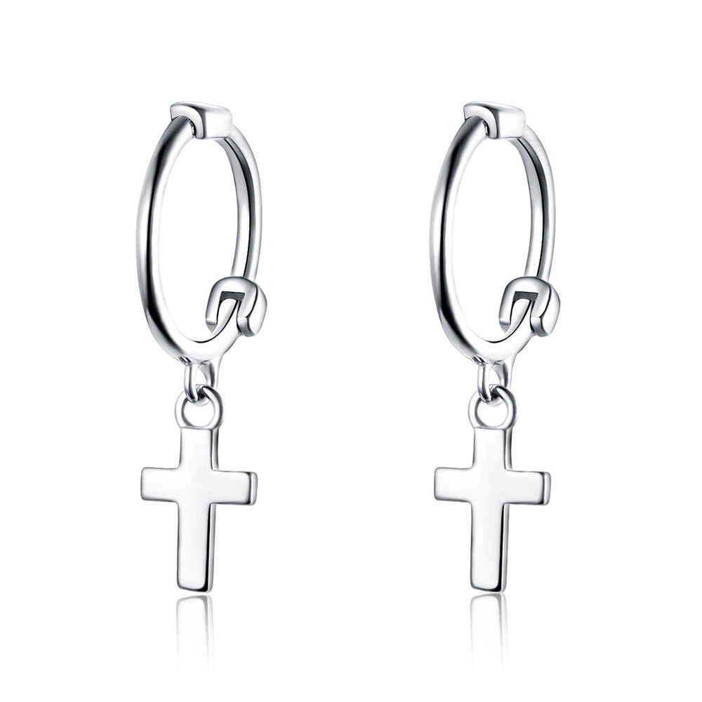 Introducing our Cross Dangly Earrings, the perfect combination of subtlety and style. Each earring features a dainty silver cross drop hanging from a classic hoop, adding just the right touch of understated chic to any outfit.