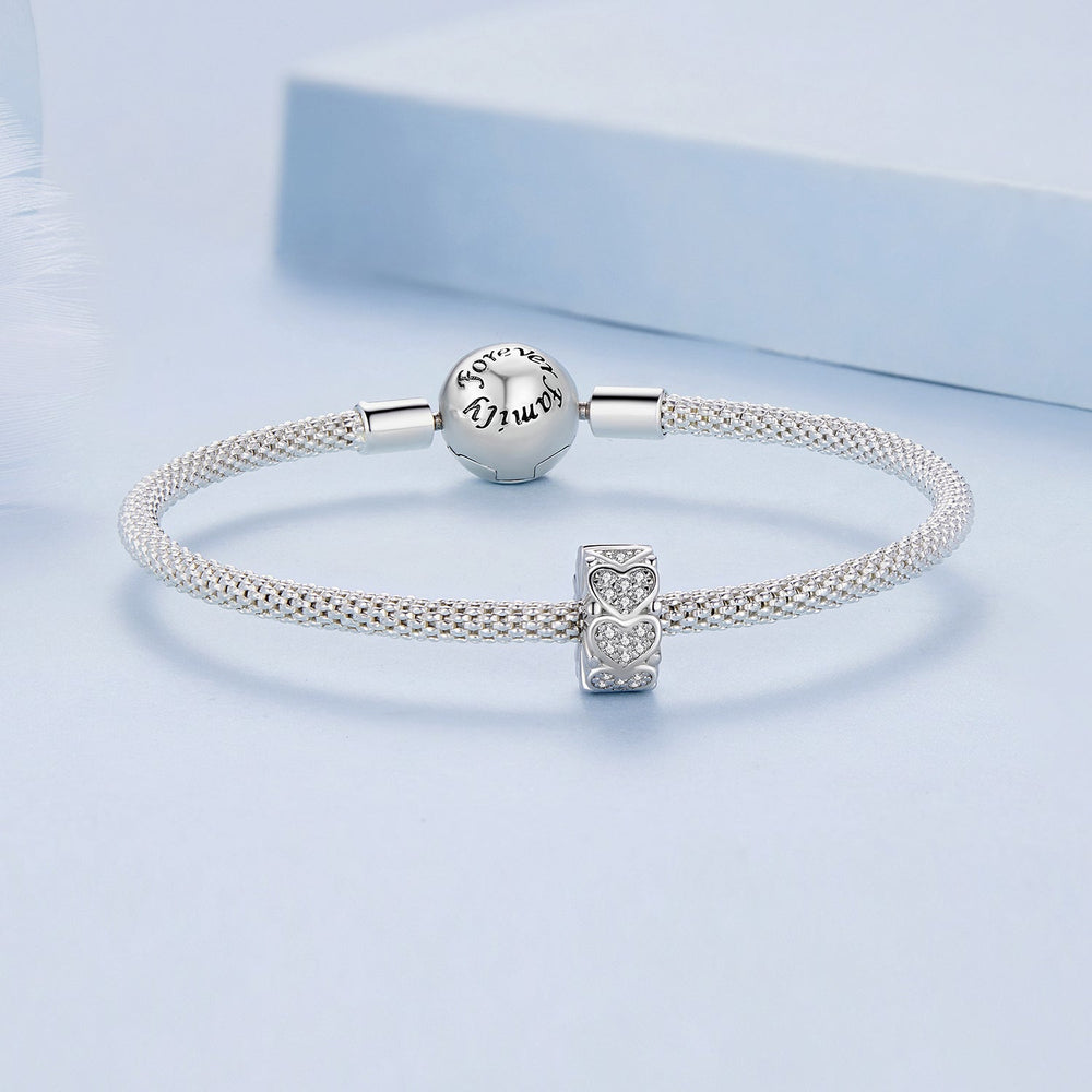 This sterling silver charm features a circle of hearts embellished with sparkling cubic zirconia stones. Add a touch of luxury to your collection and let this charm be a reminder of the beauty that surrounds you.