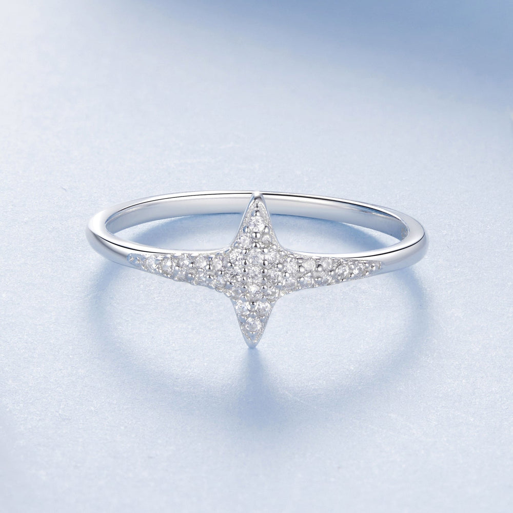 This sterling silver ring features a delicate cubic zirconia star. Its simple yet stunning design makes it the perfect accessory to add subtle elegance to any outfit.