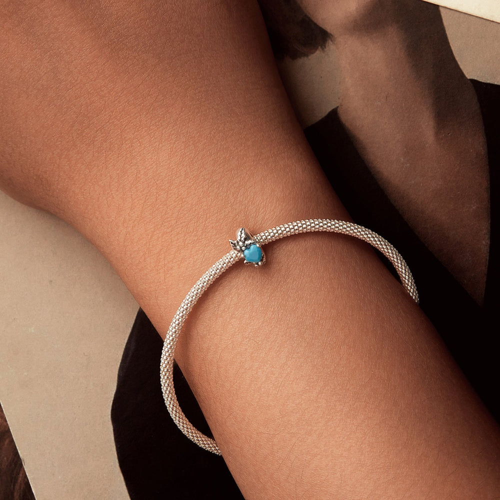 Please note: Our birth flower charms are petite (dimensions provided below). Details, including the flower and blue stone, sit on a simple sterling silver spacer.