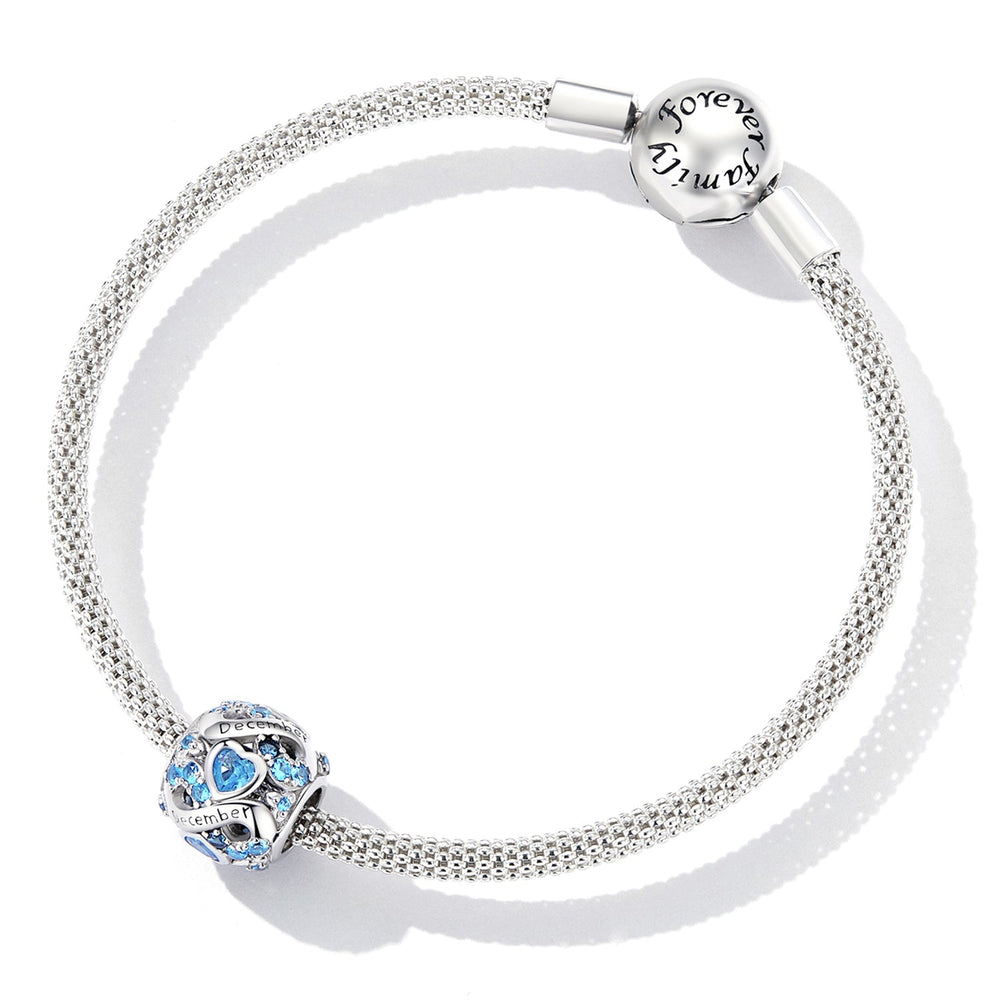 Embrace the everlasting beauty with our December Infinity Birthstone Charm. Adorned with sparkling blue cubic zirconias, with an infinity loop and heart design. It's a timeless charm that represents infinite love and endless possibilities. Featuring the birthstone for December, it's the perfect addition to your charm collection. Elevate your style with this luxurious charm.