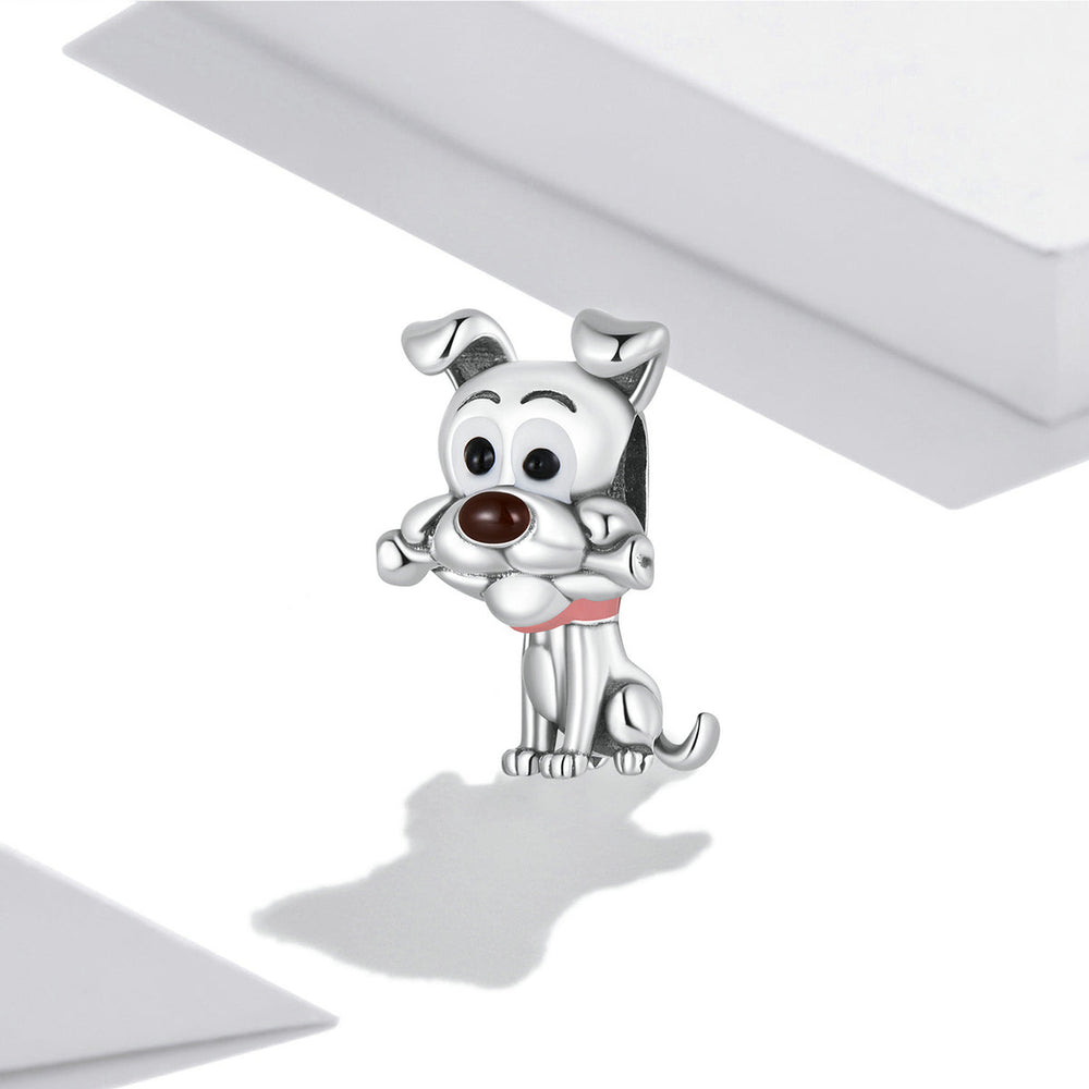This sterling silver charm, featuring a sweet dog who has a bone in its mouth, is a must-have for dog and animal lovers. Add it to a charm bracelet or necklace.
