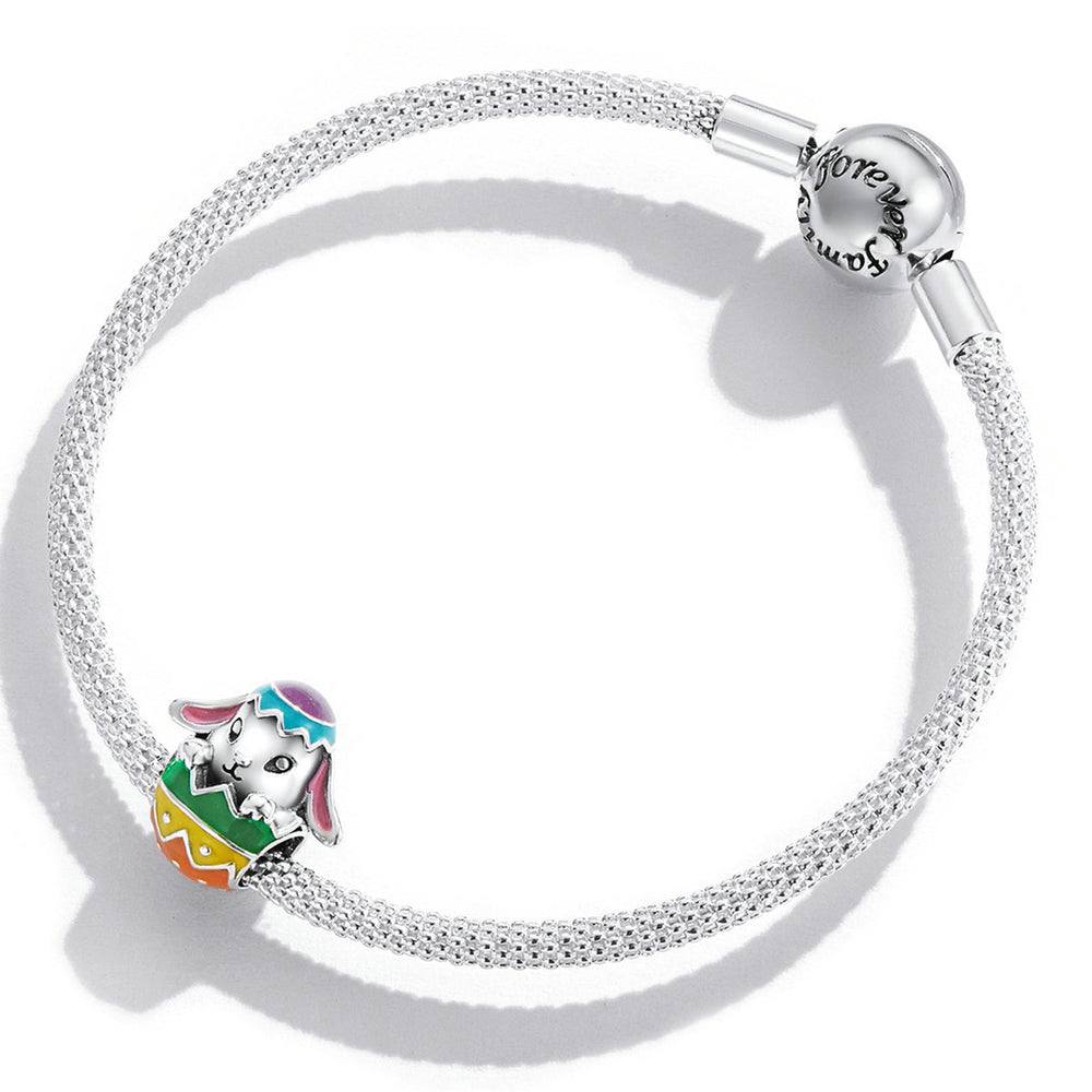 Experience the joy of Easter with our Easter Bunny in Egg Charm! Made of sterling silver, this charm features a cute bunny hiding inside a brightly coloured egg, perfect for adding a touch of cheer to your charm bracelet. Celebrate the season with this playful and adorable addition to your jewellery collection.