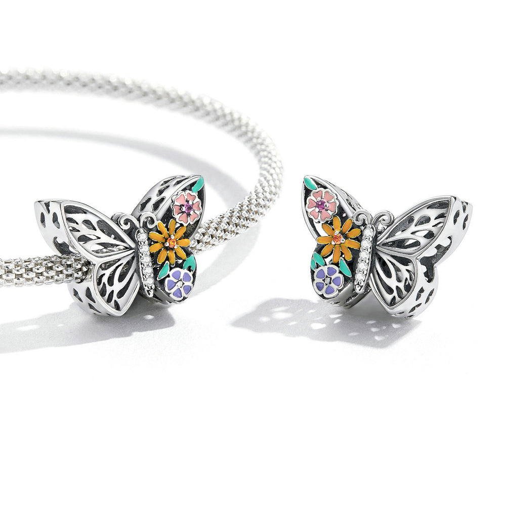 This Floral Butterfly Charm will add a touch of delicate elegance to any piece of jewellery. The intricate details of the butterfly, embellished with blooming flowers, captures the beauty of nature. The perfect addition to your collection or as a gift for a loved one.