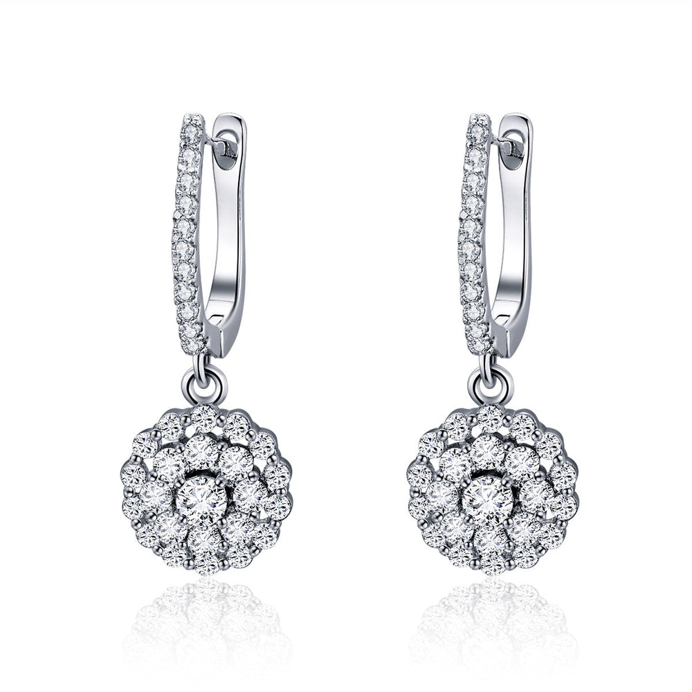 These stunning earrings feature a gorgeous flower drop design adorned with sparkling cubic zirconia stones; the perfect accessory for any special occasion or fancy event. Make a statement with these stunning earrings!