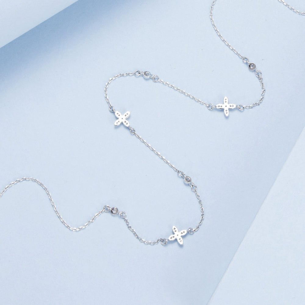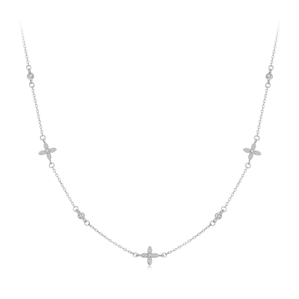 This gorgeous sterling silver necklace, plated in luminous white gold, features delicate cubic zirconia accents. Delicate and sophisticated, it the perfect accessory for everyday wear or a special occasion.