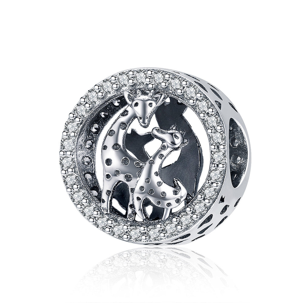 Go on a safari with our Giraffe & Baby Charm, an adorable addition to any bracelet or necklace! This charm features a mother and baby giraffe circled by sparkling cubic zirconia stones. Show off your love for animals with this sweet sterling silver charm.