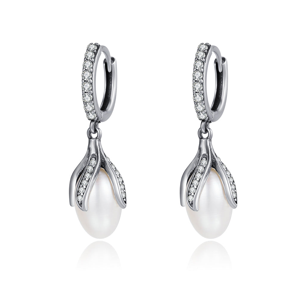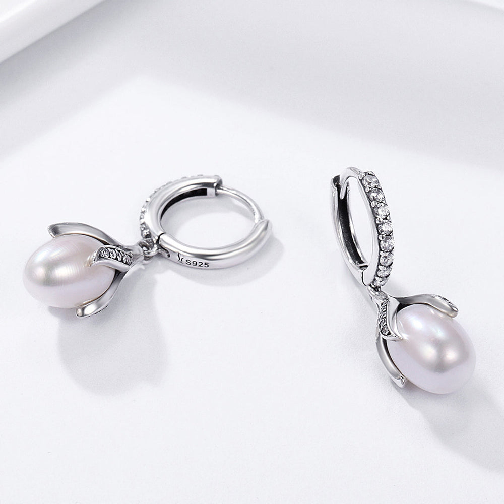 Theses beautiful earrings, featuring a pearl drop design that is almost floral in nature, are the perfect accessory for any fancy outfit.
