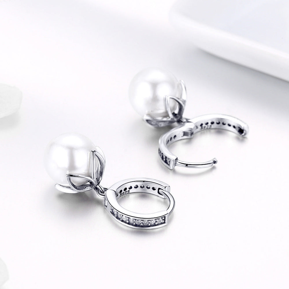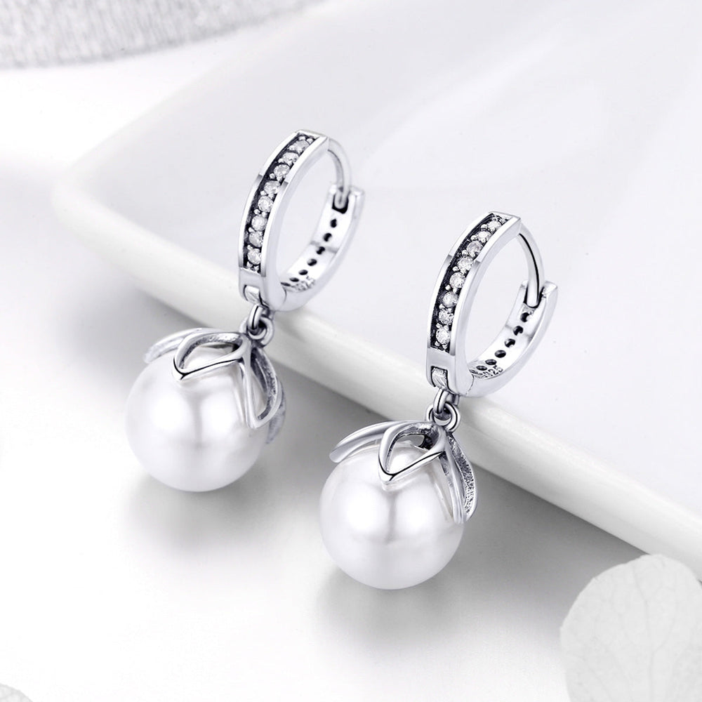 These stunning statement earrings feature a large, lustrous pearl drop. Perfect for any special occasion, they make a great gift for someone who loves to accessorise. Add a touch of glam to any outfit with these gorgeous earrings.
