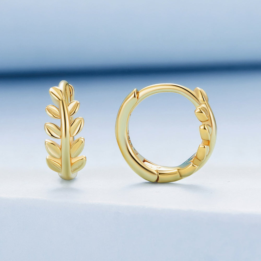 Made from delicately crafted gold-plated sterling silver, these hoop earrings feature a stunning leaf design. Elevate any outfit with this gorgeous pair of earrings.