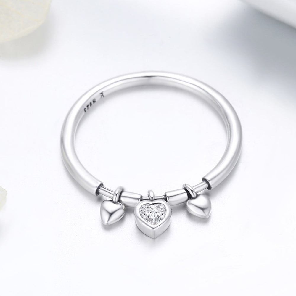 Step up your accessory game with this Hanging Hearts Ring. Crafted from sterling silver, its delicate band has hearts gracefully suspended from it. This ring is perfect for those who appreciate refined, understated and timeless jewellery.