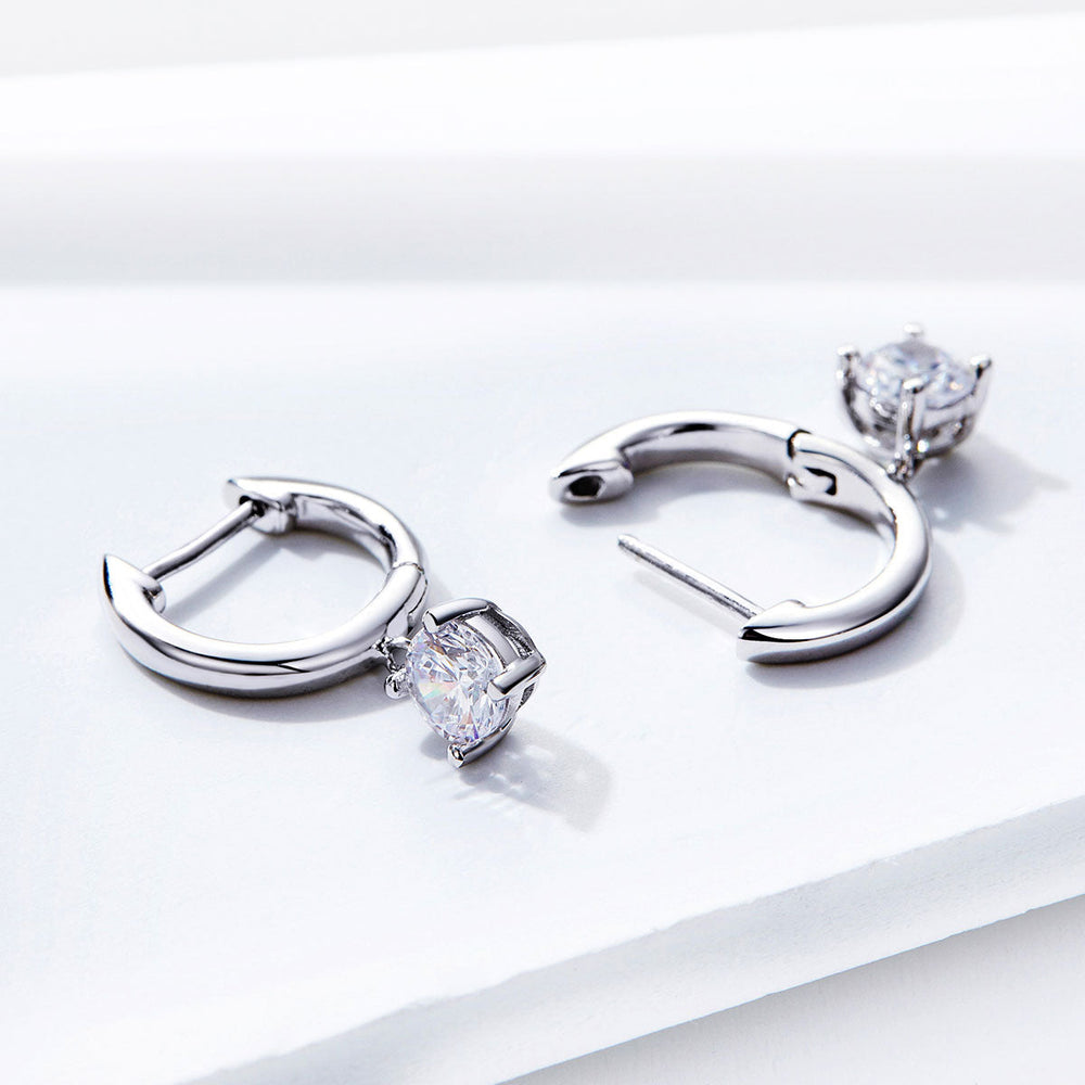 Crafted from sterling silver, these simple yet sophisticated hoops feature elegant cubic zirconia drops for a classic touch of luxury. The perfect addition to any outfit.