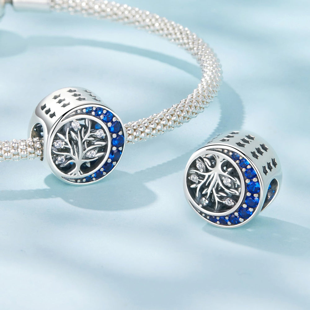 Crafted from sterling silver, the Moonlight Tree Charm beautifully captures a delicate tree of life embraced by a crescent moon. This elegant piece symbolizes growth, harmony, and new beginnings, making it a meaningful addition to any collection.