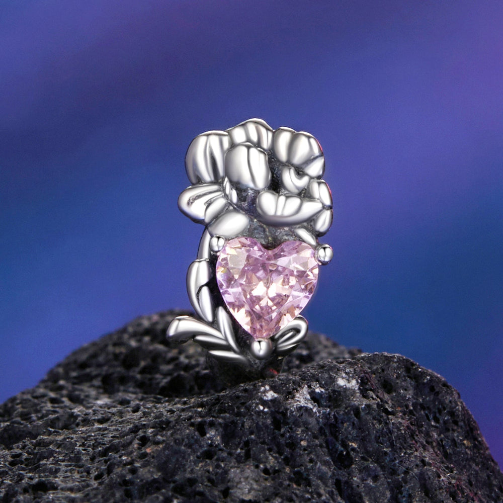 Please note: Our birth flower charms are petite (dimensions provided below). Details, including the flower and cubic zirconia stone, sit on a simple sterling silver spacer.