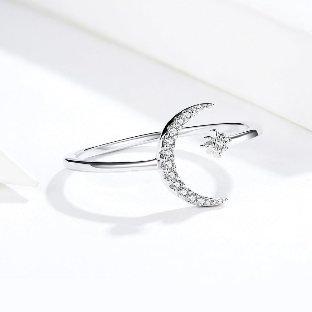 This Open Moon & Star Ring features a stunning crescent moon and star design, offering a unique accessory for those who appreciate sophisticated jewellery. This ring is the perfect accessory for adding subtle charm and individuality to your collection.