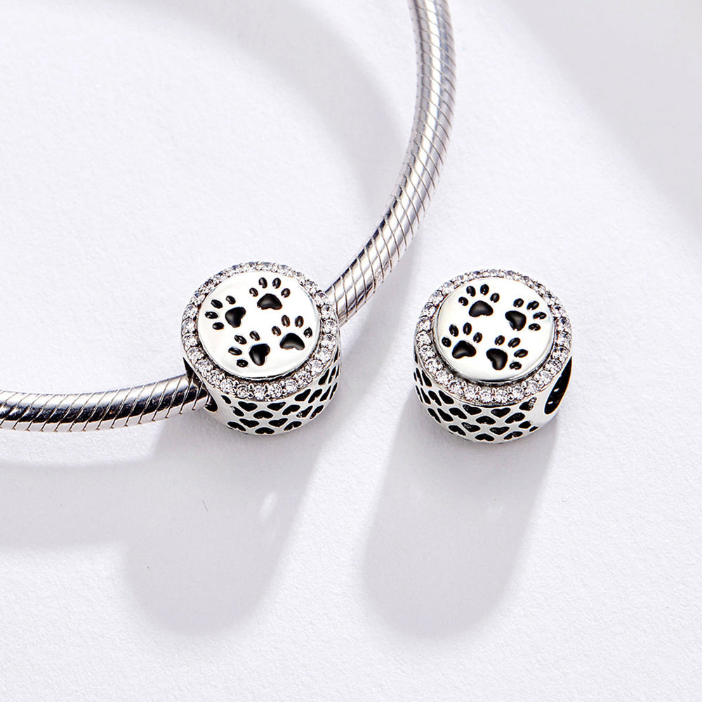 Celebrate your fur baby with our Paw Prints Charm. Crafted from sterling silver with black enamel and sparkling cubic zirconia details, this charm may serve as a heartfelt reminder of a pet that has crossed the rainbow bridge, or celebrate existing fur babies. Wear a meaningful reminder of your unconditional love and companionship wherever you go.