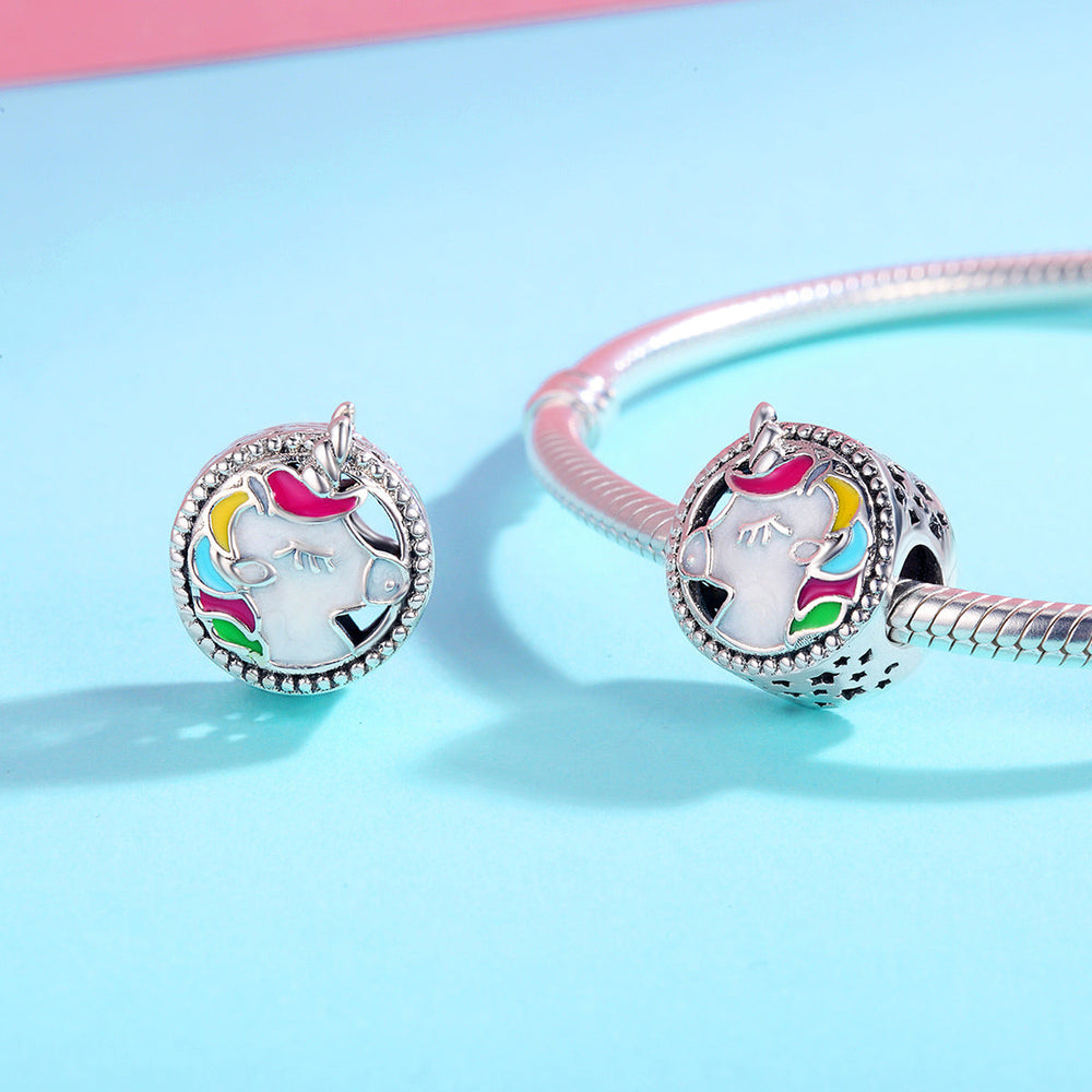 Indulge in the magical world of unicorns with our Rainbow Unicorn Charm. The intricate sterling silver details and rainbow enamel will add a touch of beauty and wonder to any outfit. Perfect for the little girl in your life, this charm is a must-have for any collection.