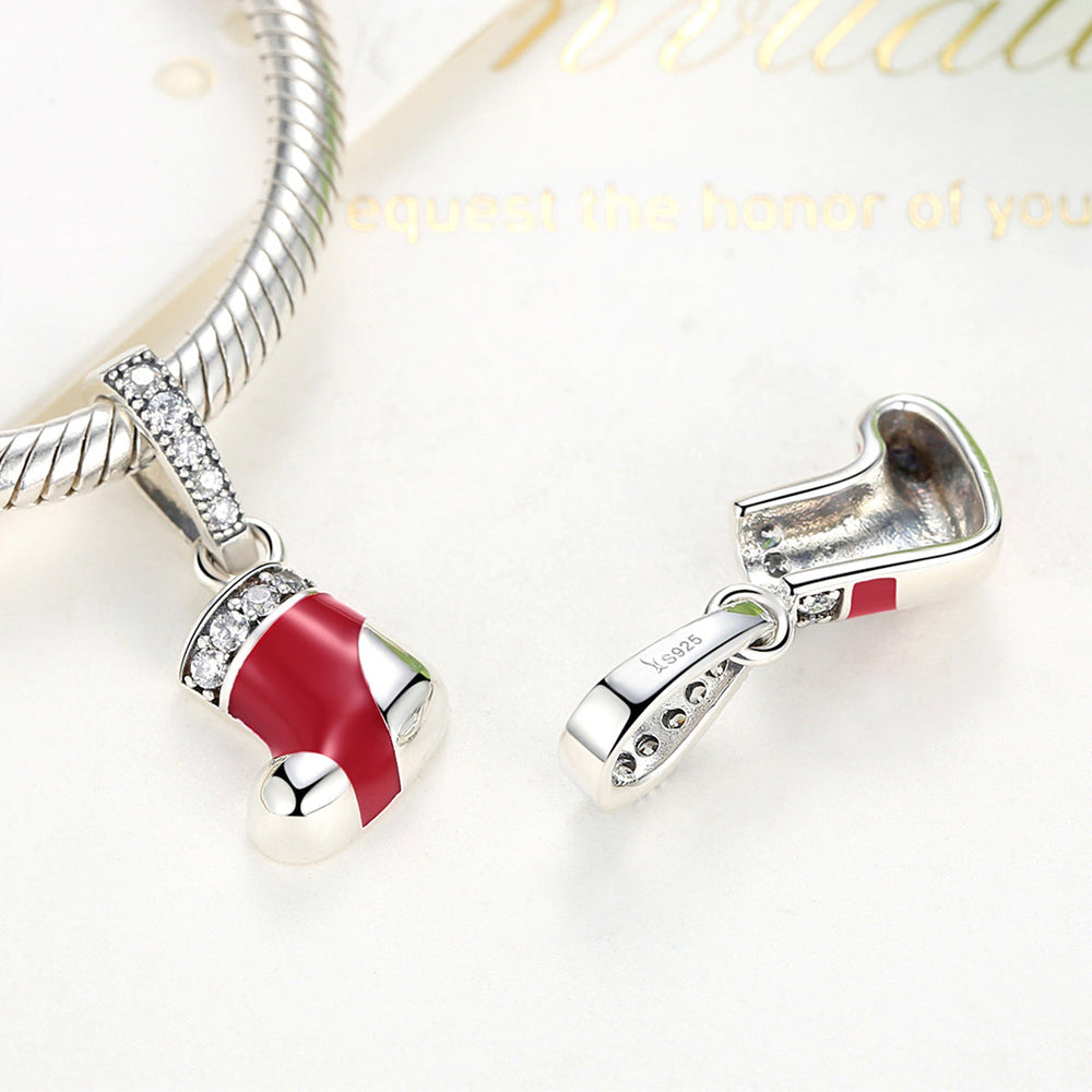 Get into the holiday spirit with our Santa Stocking Dangle Charm! Made from sterling silver, with sparkling cubic zirconia and vibrant red enamel details, this charm is festive, fun, and perfect for gifting to your loved ones. Add it to your charm bracelet or necklace for a touch of Christmas cheer all season long.