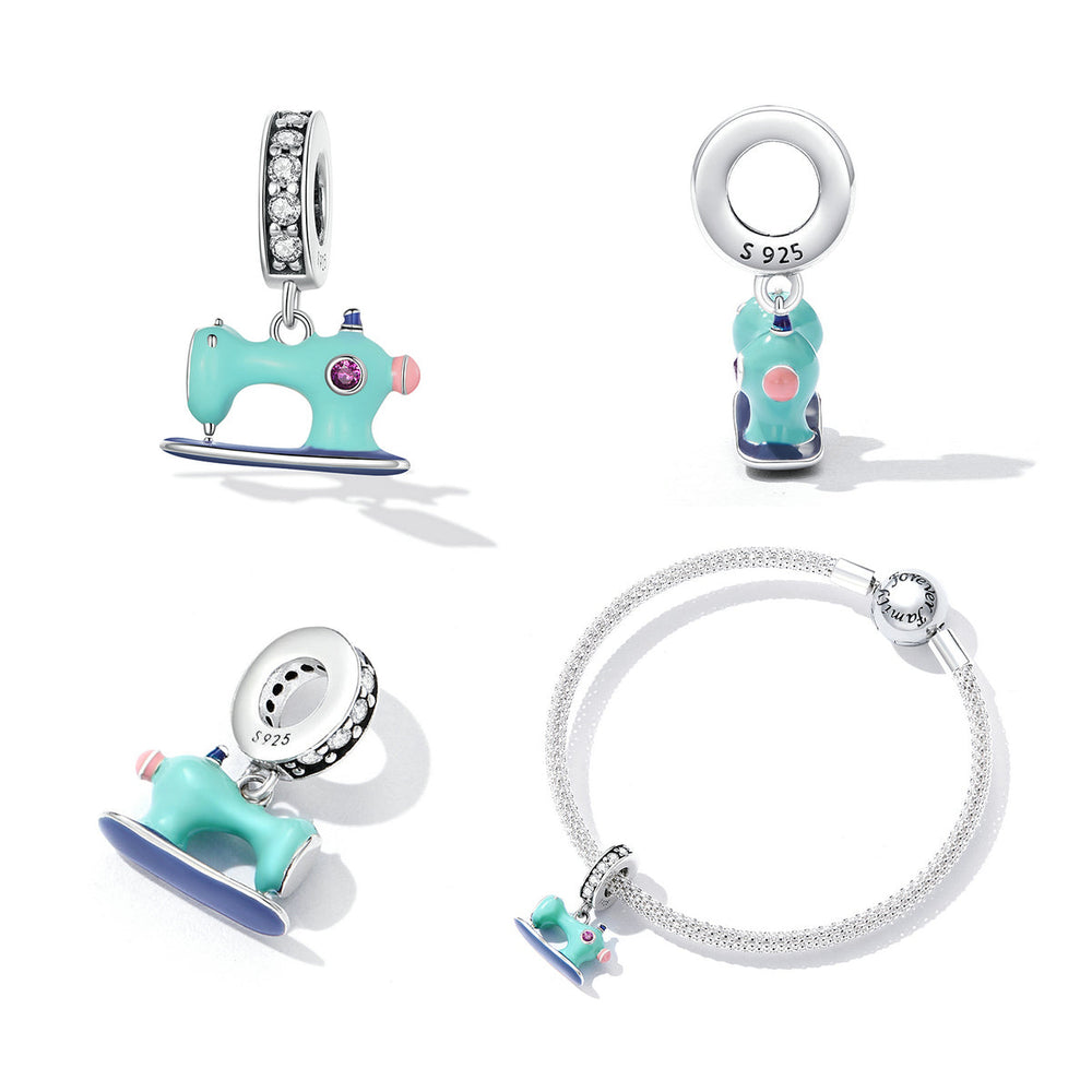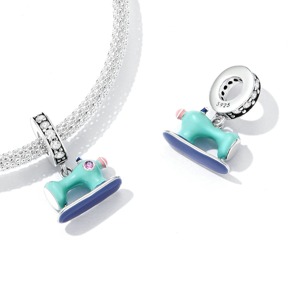 Sew stylish! This sweet dangle charm is perfect for anyone who loves to sew. The sewing machine design in gorgeous pastel pink and blue with cubic zirconia details is a showstopper. Display a love for crafting with every outfit.