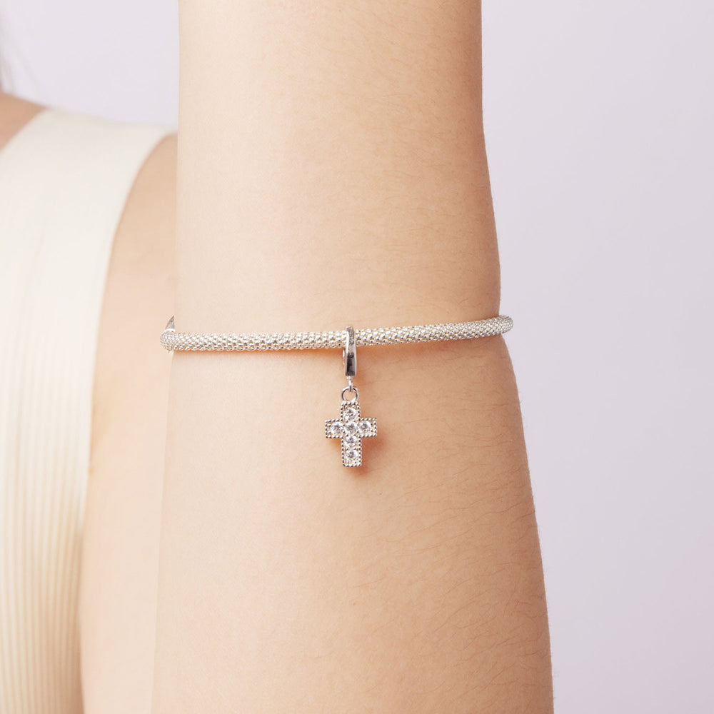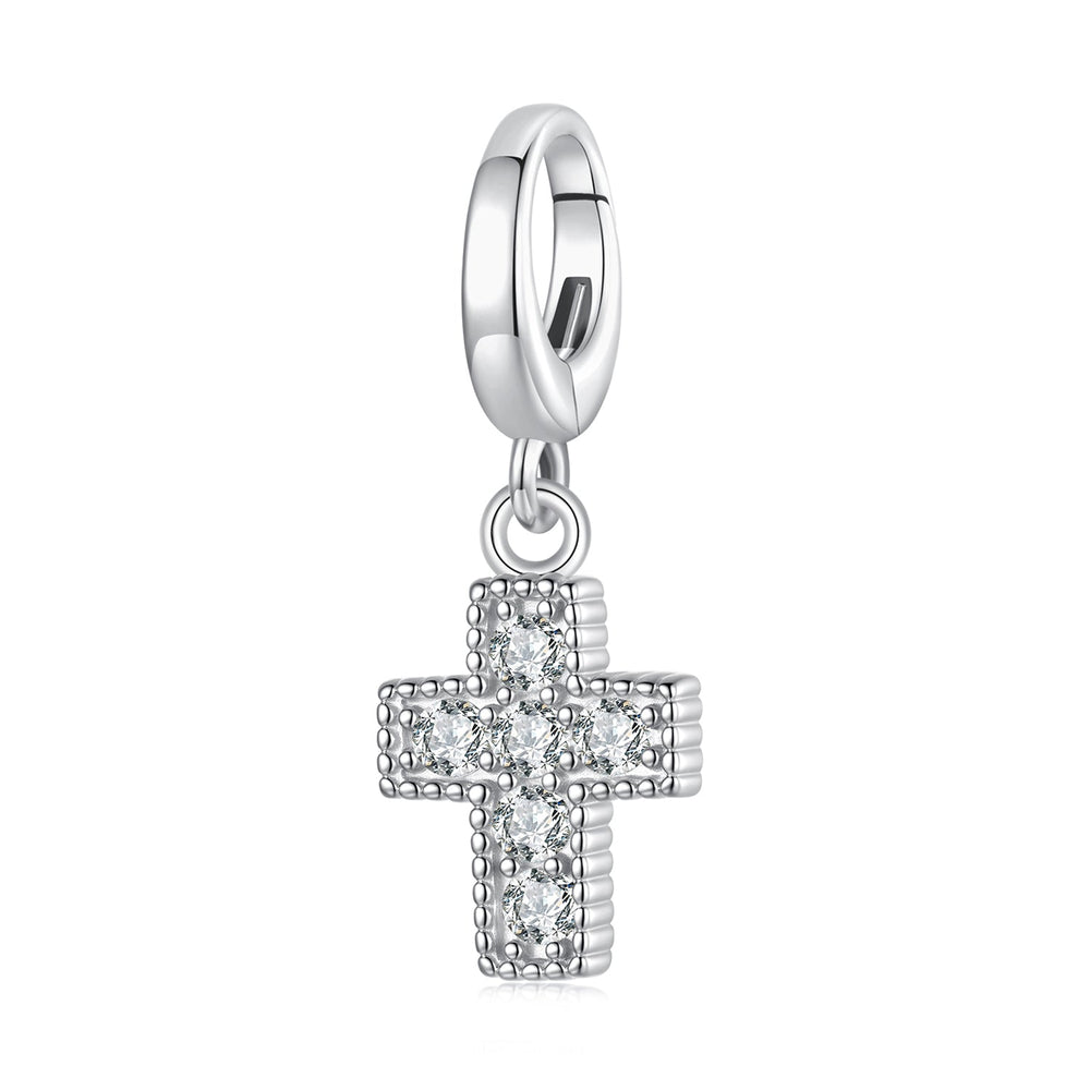 Express your faith with this elegant silver cross pendant charm featuring gorgeous cubic zirconia stones. Its delicate design makes it a timeless symbol for daily wear. Perfect for layering or as a stand-alone piece, it seamlessly combines spiritual significance with sophisticated style.