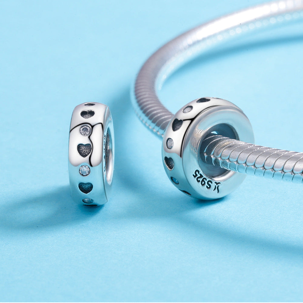 Upgrade your jewellery collection with our Simple Heart & CZ Spacer Charm! This elegant and understated accessory will add a touch of sophistication to any charm bracelet. Made with high-quality sterling silver, featuring heart cutouts and cubic zirconia stones, it's a perfect addition for those who appreciate minimalistic yet stylish pieces. Use this spacer to separate your charms or to frame your favourite charms.