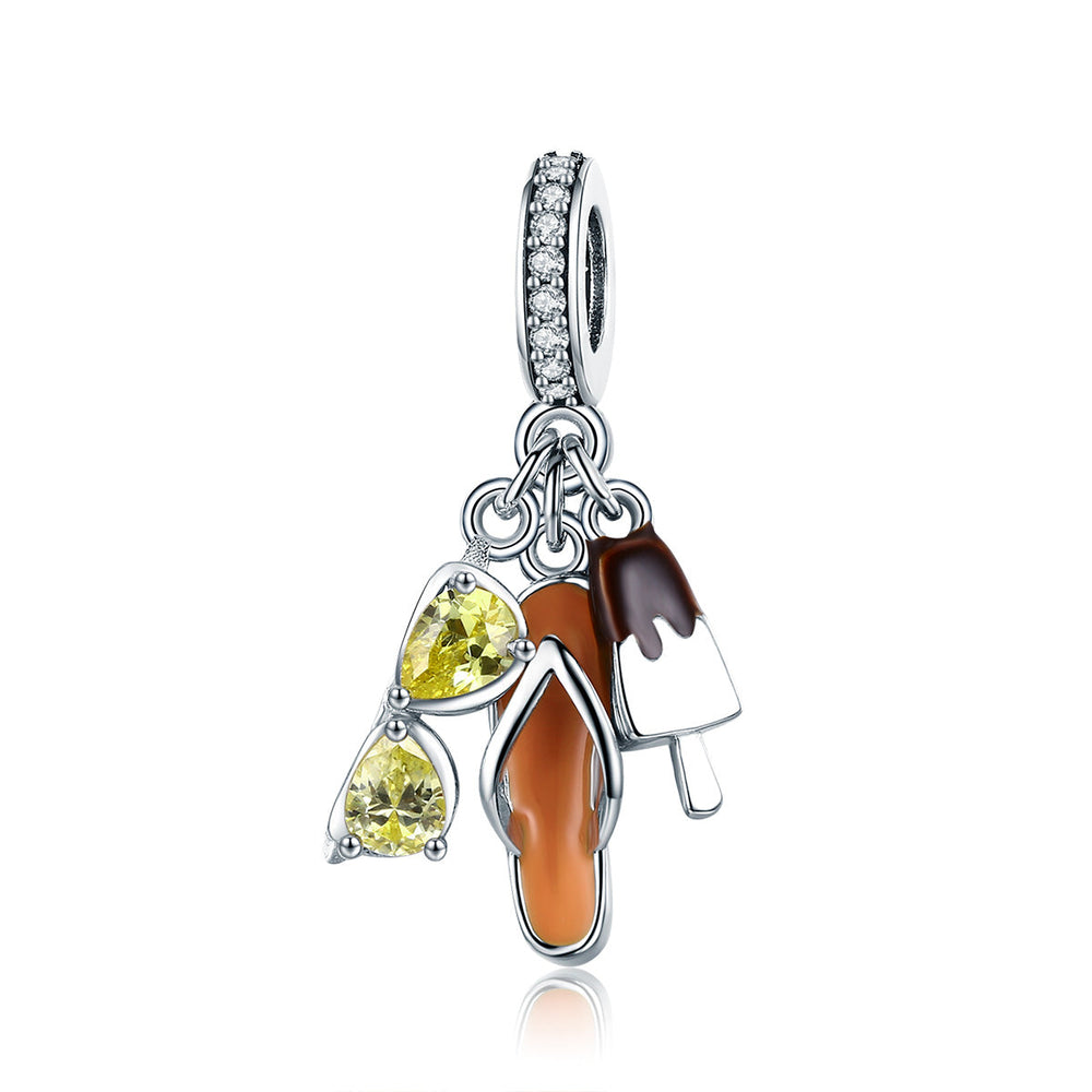 Liven up your accessories with our Summer Vibes Dangle Charm! Featuring a cute ice cream, jandals, and sunnies, this charm will bring back memories of long days at the beach. Perfect for adding a summery touch to any outfit.