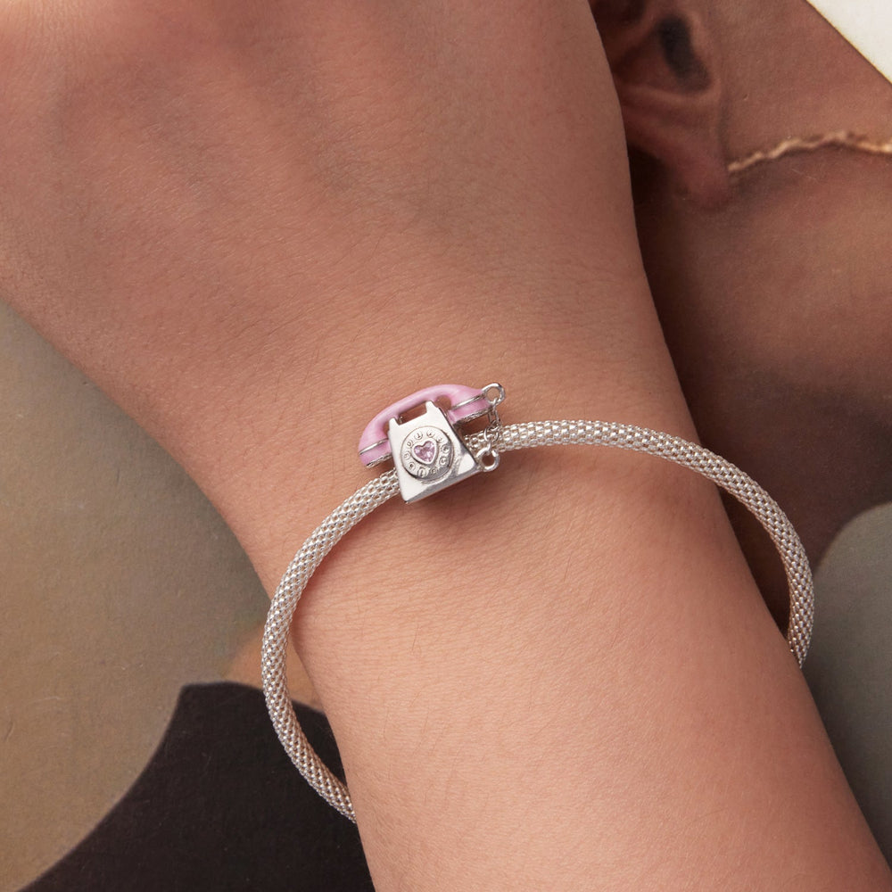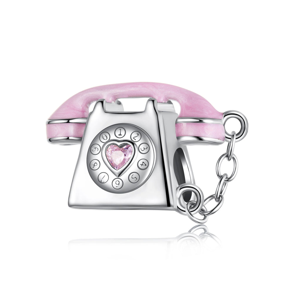 Add some nostalgia to your charm collection with our Telephone Charm. Featuring a classic dial telephone design, it includes sweet details like a pink cubic zirconia heart and a delicate handset cord, making it both playful and elegant. Perfect for expressing your unique style or gifting to someone special who loves vintage-inspired accessories.