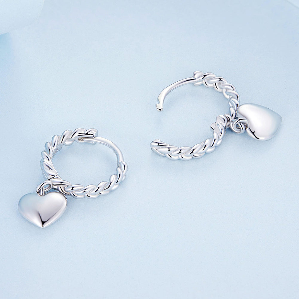 Give your ears some love with our Twisted Heart Drop Earrings. These detailed earrings feature twisted silver hoops and sweet heart drops. A perfect way to show some love to your outfit.